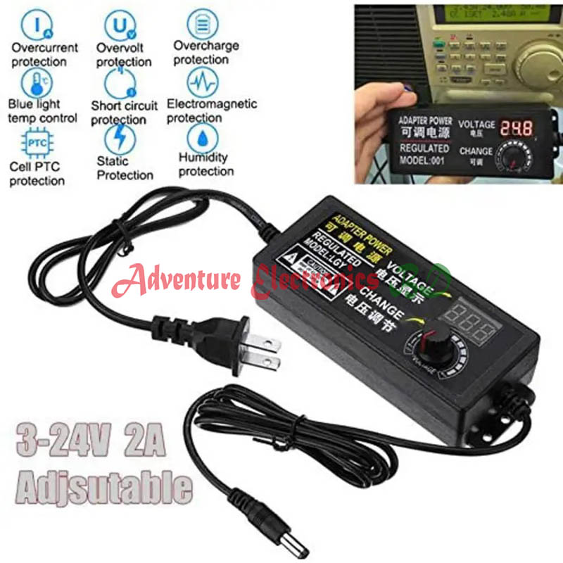 Adjustable DC 24V 3A Power Adapter with LED Voltmeter